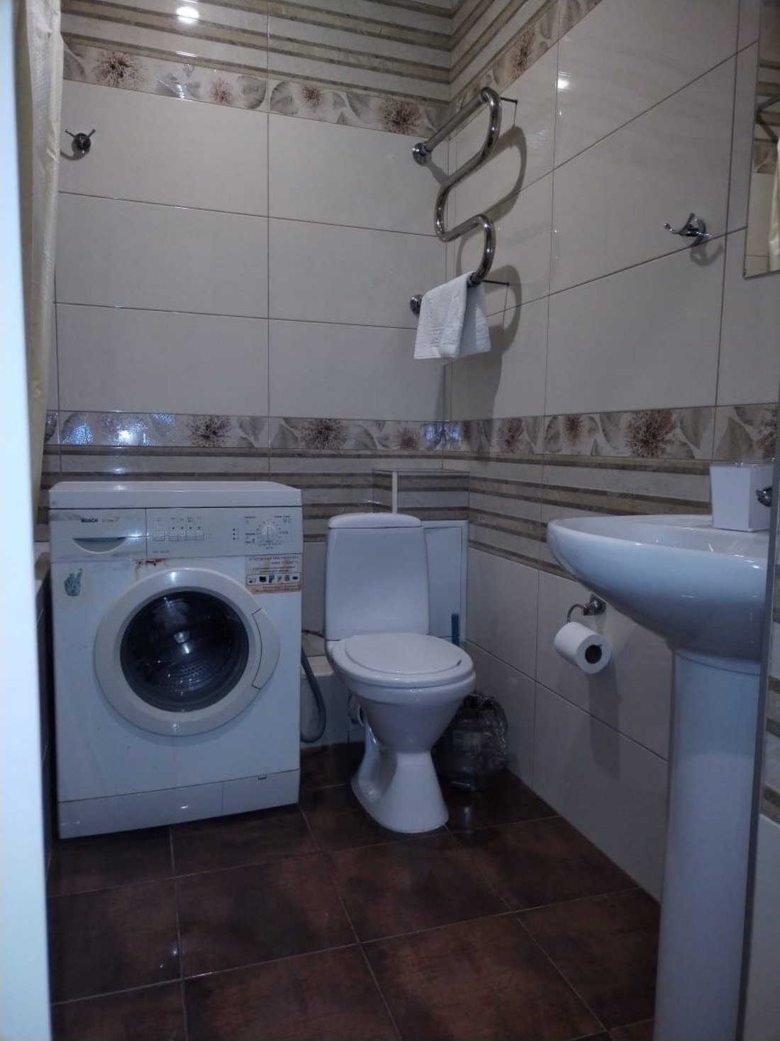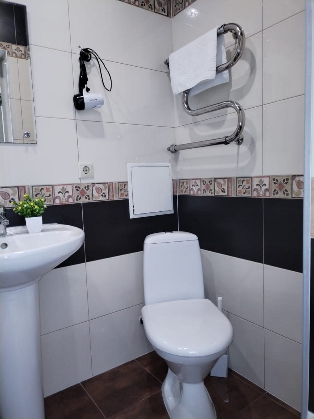 Индивидуальная ванная комната: ванна, раковина, туалет.